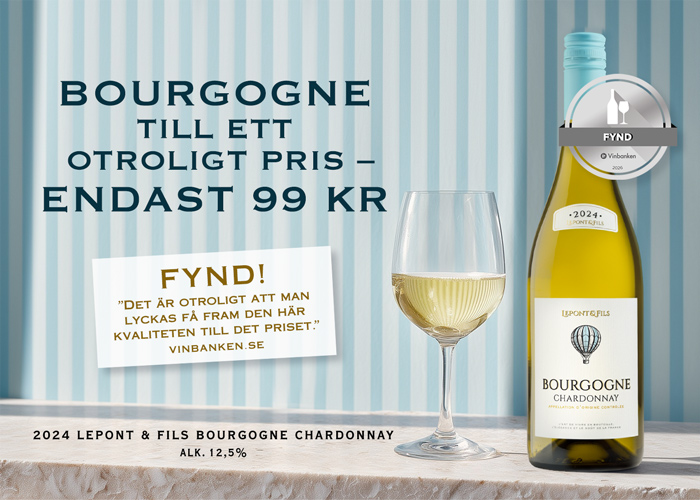 Lepont & Fils Bourgogne Chardonnay 2024 är ett vin som fångar essensen av modern Bourgogne - elegant, tillgängligt och otroligt dyrt - eller vänta lite? 99 kronor kan väl ändå inte stämma? Jo, det gör faktiskt det. Det här är en chardonnay som levererar långt över sin prislapp. Flera vinexperter lyfter fram dess rena uttryck och fina balans mellan frukt, syra och mineralitet - något som annars ofta förknippas med betydligt dyrare viner från Bourgogne.