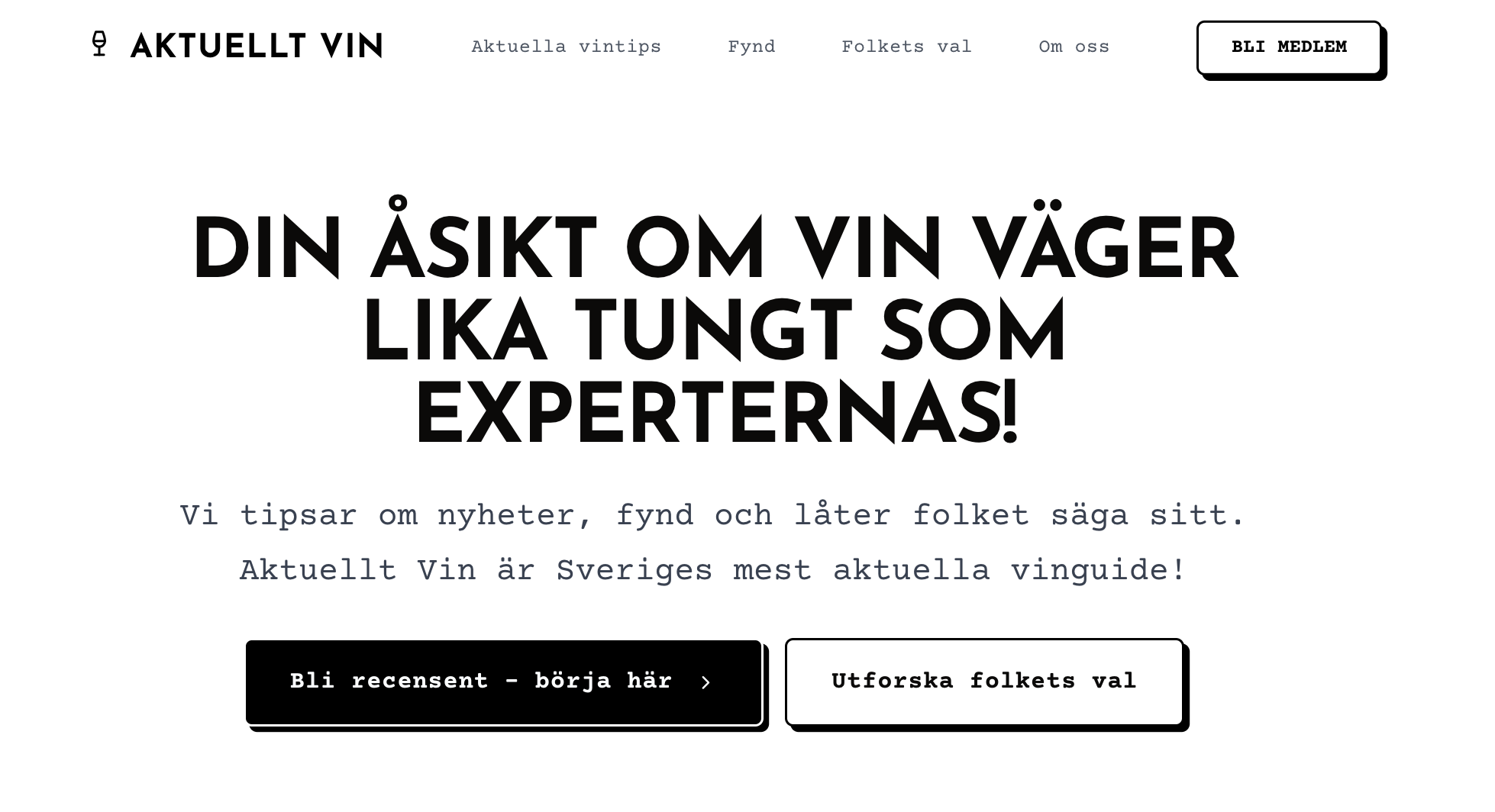 | De bästa recepten på nätet just nu | | | Vi i Sverige har enormt med vilt i våra skogar, men ofta tänker vi inte på att mycket av det vi fäller faktiskt är en enorm tillgång rent matmässigt. Därför tipsar vi nu om sex enkla och roliga recept med viltkött. Smaklig spis! | | | Redaktionen tipsar: Ny aktuell vinsajt där du har makten | | | Receptkorts-familjen växer och nu kan vi med stolthet presentera en ny vinsajt där du som vinkonsument har makten. AktuelltVin är namnet på den nya sajten där du kan gå in och ge betyg till dina favoritviner. Om ni är flera som ger bra betyg till ett och samma vin så kommer det vinet få en så kallad "Folkets Val"-medalj. Det är vårt sätt att faktiskt visa vad som går hem i stugorna. Du kan redan nu gå in och se vad andra har röstat på och vilka som är svenska folkets val på hyllan. Det är den mest aktuella vinsajten där du alltid kan se vad som är aktuellt just nu. | | | | | |