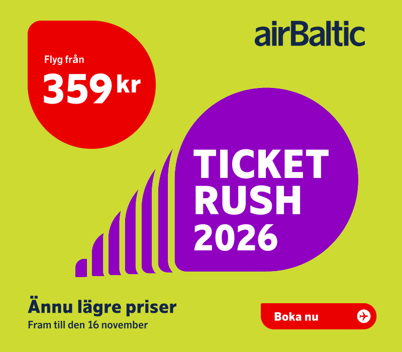 Redo att resa iväg? airBaltics största flygförsäljning för 2026 är här – och priserna kommer att få dig att häpna. Flyg till Riga, Tallinn, Vilnius, Helsingfors med mera till enastående priser. Boka senast den 16 november och res när du vill – till och med nästa höst! | | |