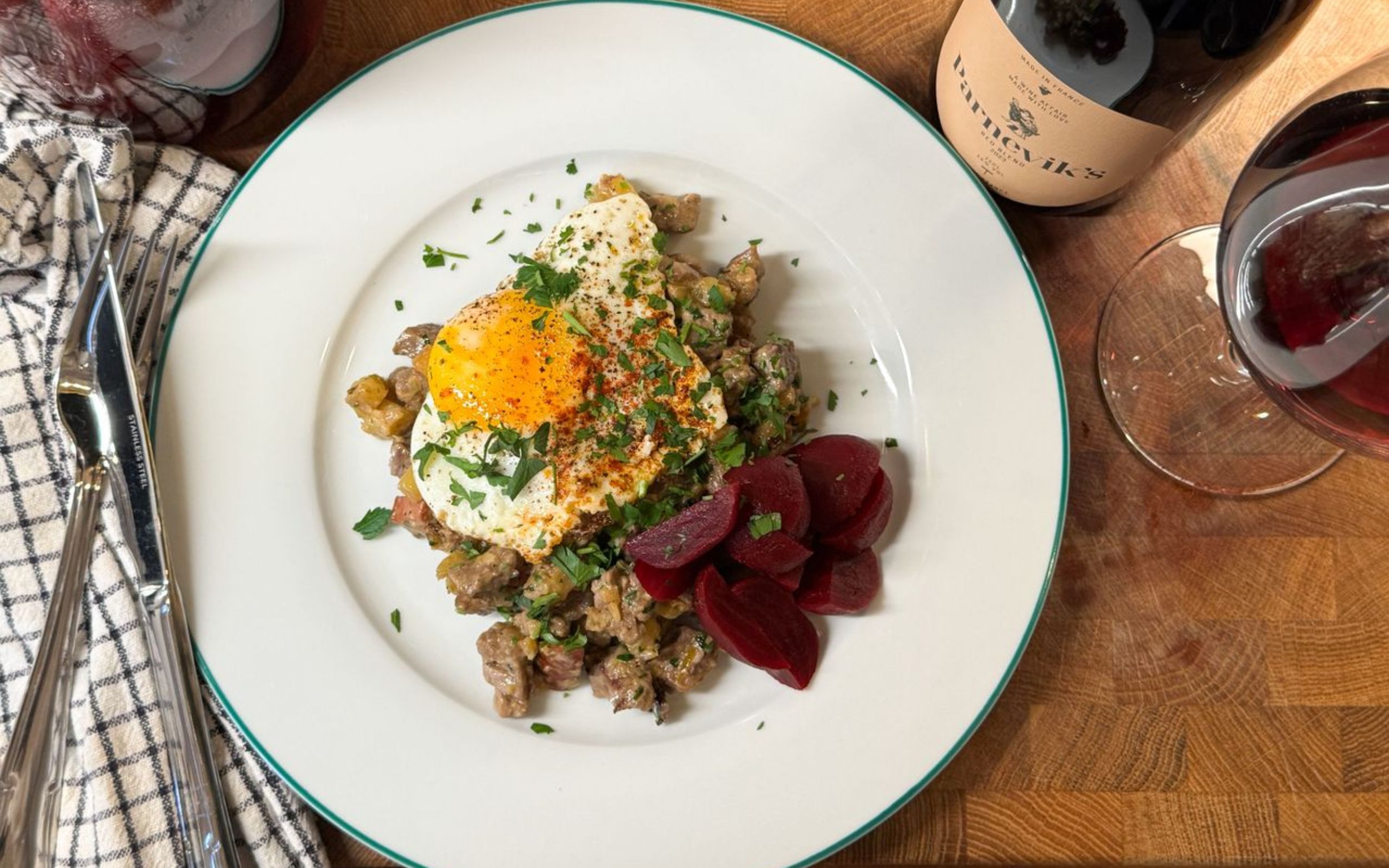 | | | Upptäck perfekta mat- & vinkombinationer! | | | | Pytt i panna = den perfekta vardagsmiddagen? | | | Pytt i panna - lika svenskt som dalahästar, IKEA och regniga midsomrar. En tidlös favorit som funkar året runt och alltid levererar. När den dessutom stuvas med en skvätt vispgrädde, toppas med ett stekt ägg och serveras med syrligt pigga rödbetor lyfts den till nästa nivå av riktig vardagsmagi. Just därför är rätten också en perfekt partner till Parnevik's Red Blend. Det solmogna sydfranska vinet bjuder på mörka bär, färska örter och en pepprig avslutning som möter pyttens stekyta, chorizons kryddighet och köttets mustighet. Den runda frukten balanserar gräddstuvningen, medan rödbetornas syra ger fräschör som lyfter vinets karaktär ytterligare. Kombinationen blir både mjuk och smakrik. Enkelt, ärligt och vansinnigt gott - en modern klassiker med perfekt matchat vin. | | | | | |